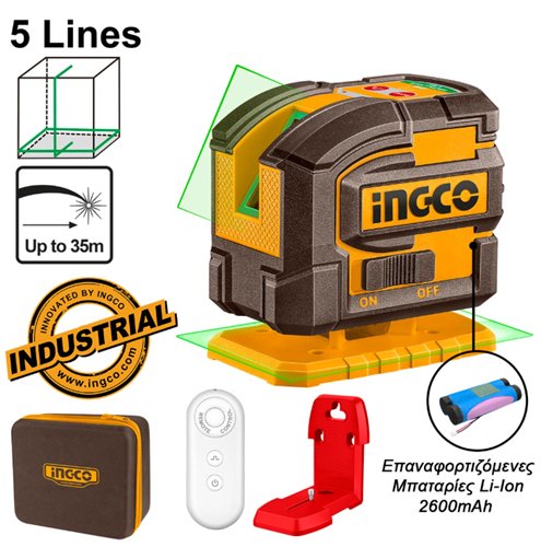 Αυτοαλφαδιαζόμενο Πράσινο Laser Σταυρού 2 Ακτίνων INGCO