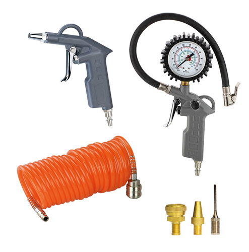Σετ πιστολιών σε Blister με φυσητήρα, αερόμετρο με τρία ακροφύσια και σωλήνα σπιράλ 5 μέτρων με ταχυσύνδεσμους πρίζα-βίσμα
