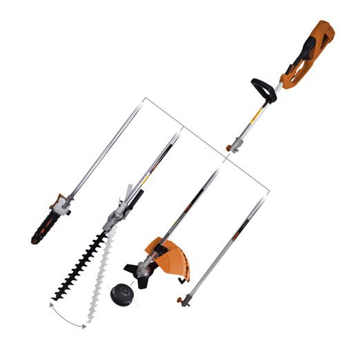 Πολυμηχάνημα κήπου ρεύματος 4 σε 1, με ισχύ 1200 Watt, και εξαρτήματα θαμνοκοπτικού,κονταροπρίονου, Ψαλίδι Μπορντούρας, Προέκταση 100cm.