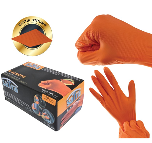 Γάντια νιτριλίου μιας χρήσης σε μέγεθος XL, σχεδιασμένα για να προστατεύουν τα χέρια από χημικά, λάδια, υγρασία και βρωμιά.