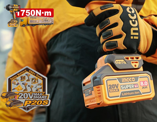 Μπουλονόκλειδο Κρουστικό Μπαταρίας 20V Li-Ion 500-650Nm INGCO