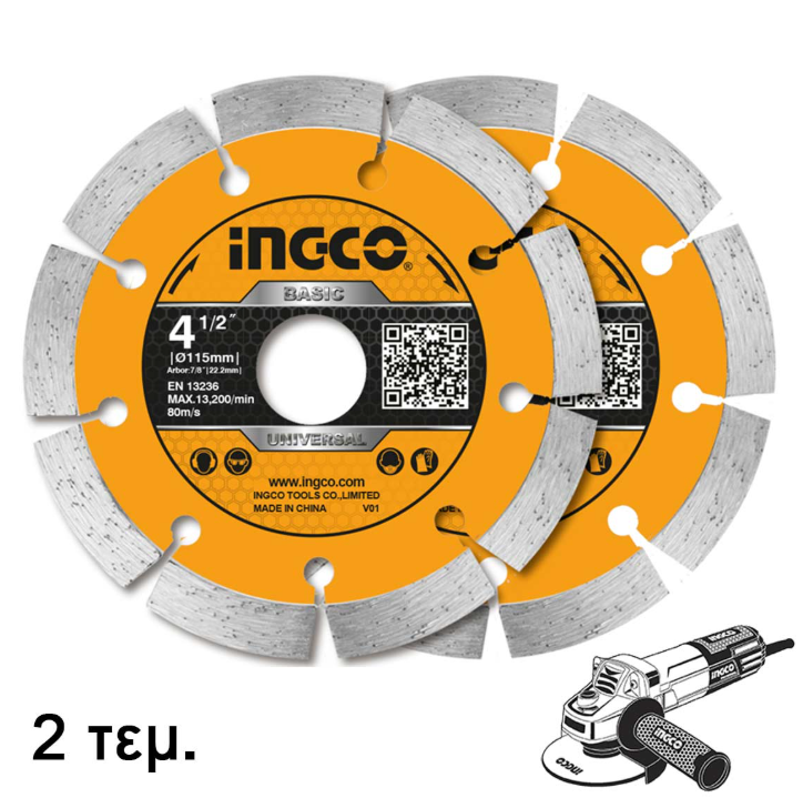 Διαμαντόδισκος Δομικών σετ 2 τεμ. 115mm INGCO
