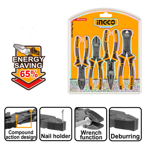 Εργαλεία Χειρός Σετ 4 τεμ.(Πένσα-πλαγιοκόπτης-Μυτοτσίμπιδο- Εμπροστοκόπτης) INGCO