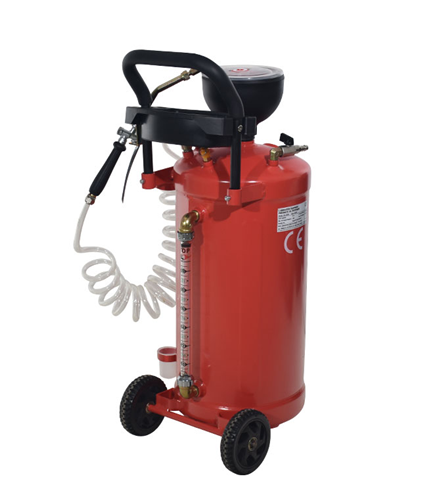 Τροχήλατη λαδιέρα βαλβολινιερά TOROS που λειτουργεί με πεπιεσμένο αέρα , κατάλληλη για λάδια μηχανών και βαλβολίνες .