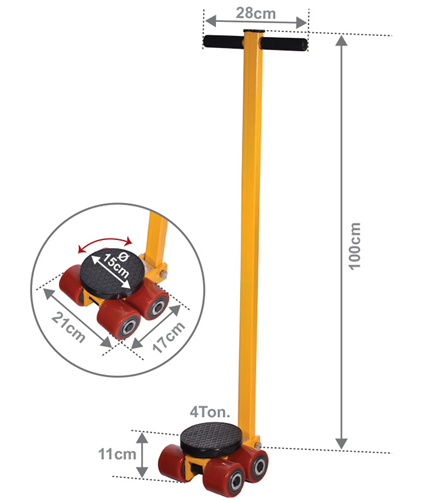 Φορείο με Περιστρεφόμενο Πέλμα και Τιμόνι για Μεταφορα 4 Τόνων με Ράουλα PU με Ρουλεμάν .