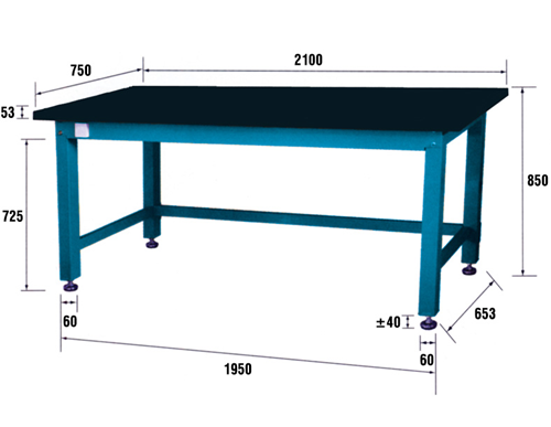 Επαγγελματικός Πάγκος Εργασίας για Μέγιστο Φορτίο ως 1000Kg με Επιφάνεια 2100X750X53mm απο MDF Επενδεδυμένο με PVC Υψηλής Αντοχής και Ρυθμιζόμενη Καθ’ Υψος Βάση, Βαμμένη με Ηλεκτροστατική Βαφή για Μεγαλύτερη Αντοχή στα Γδαρσίματα